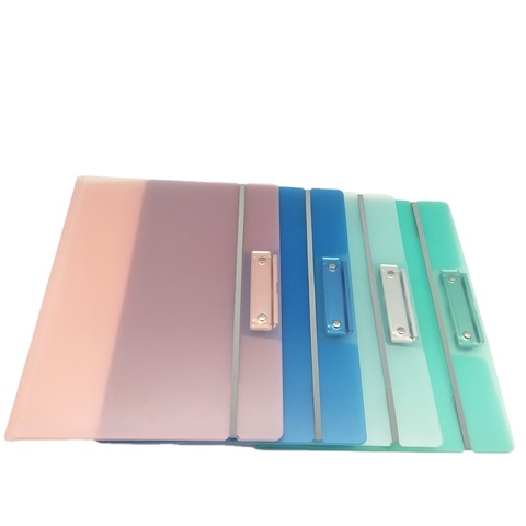 Office and School Supplies Colorful Transparent A4 Size Plastic File Folders with Metal Clip and Elastic Bands